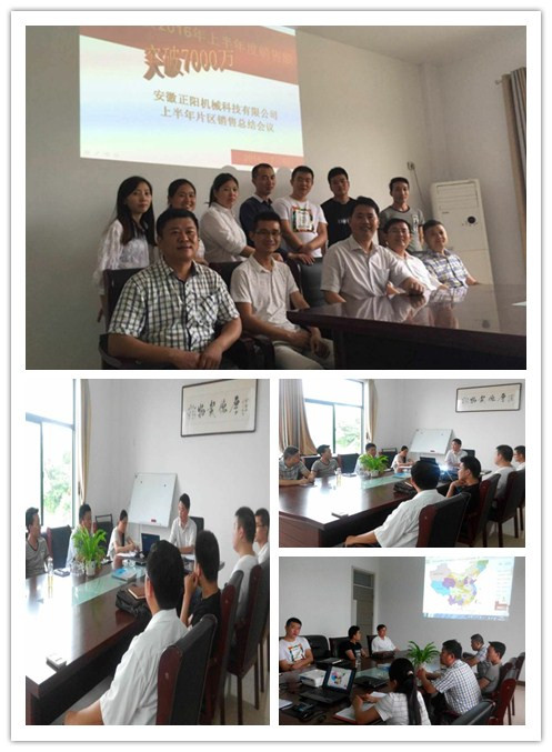在郁郁蔥蔥、生機勃發(fā)的仲夏時節(jié),正陽機械2016上半年度銷售工作總結及計劃會議在公司二樓會議室隆重召開,總經(jīng)理張為法及各區(qū)域銷售經(jīng)理等出席會議。